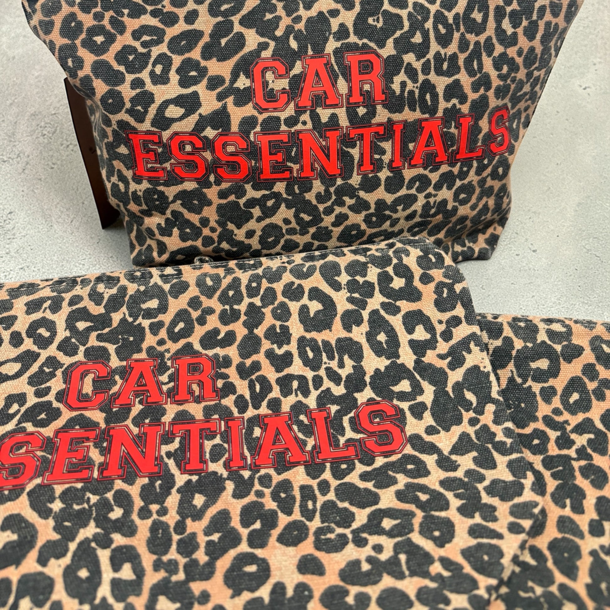 Stay organised on the go with our stylish Car Essentials pouch, designed to keep all your must-have items in one convenient place. Featuring a trendy leopard print design with bold red lettering, this versatile zip pouch is perfect for storing your everyday car necessities while adding a touch of personality to your vehicle.