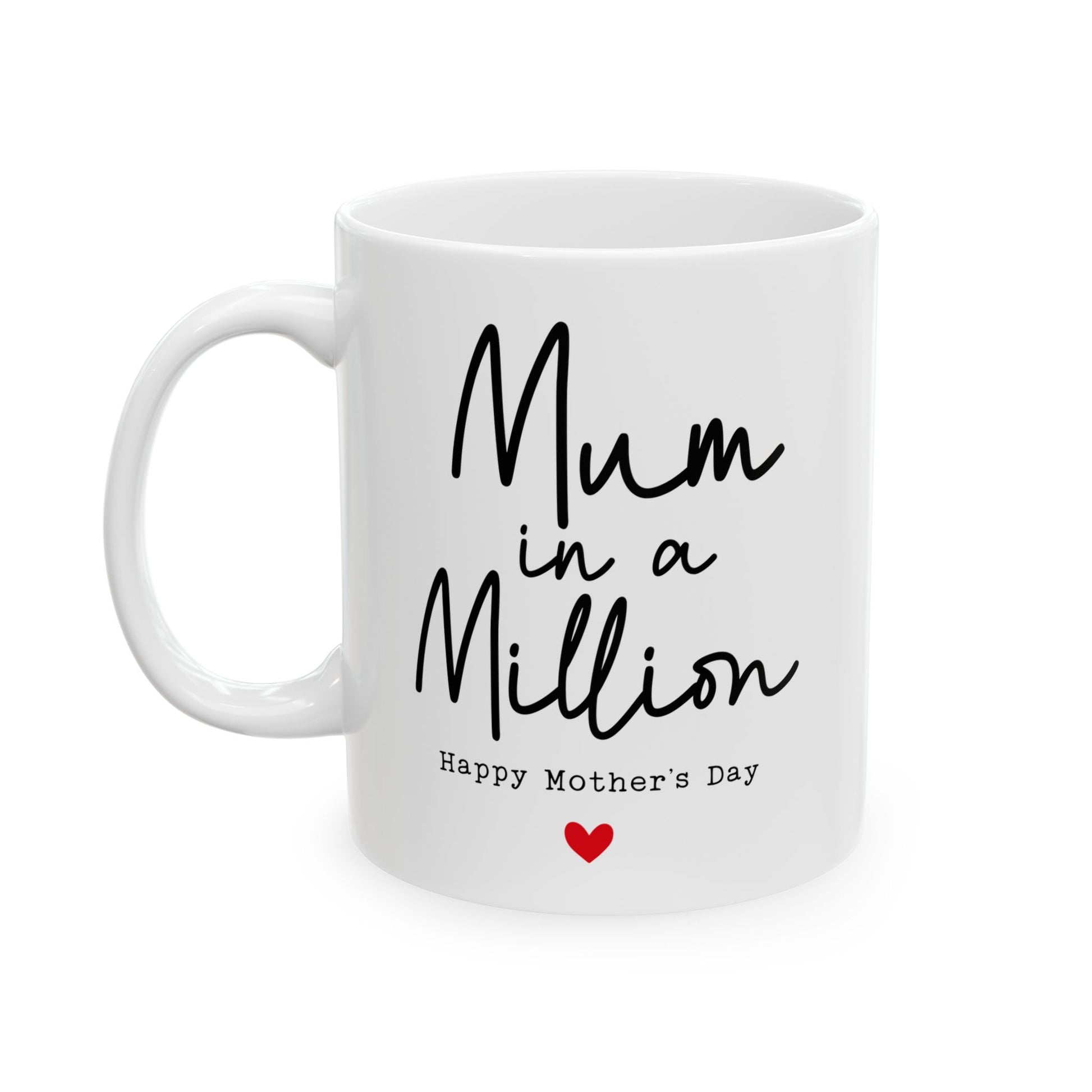 Celebrate mum with this thoughtful gift set pairing a premium ceramic mug with a matching card, both featuring the "Mum in a Million" design. The mug boasts vibrant, long-lasting print quality that resists fading through regular use and dishwasher cycles, making it perfect for her daily coffee or tea. The coordinating card adds a personal, heartfelt touch that elevates the gift. Practical yet sentimental, this set is an ideal way to show appreciation on Mother's Day or any occasion—a keepsake she'll treasure and use every day.