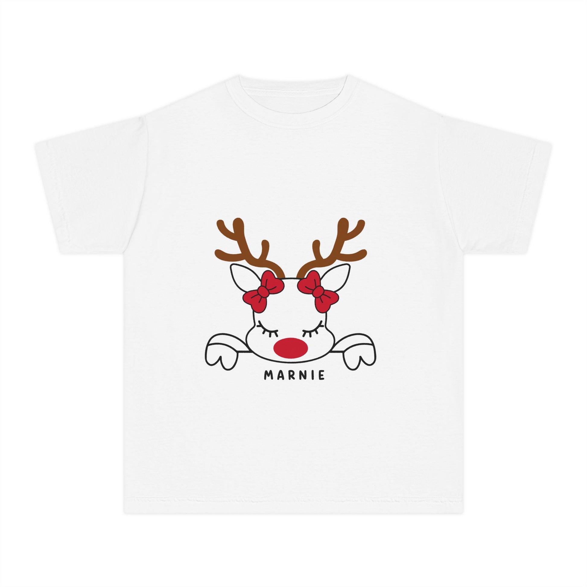 Festive fun meets personalisation with these charming girl reindeer t-shirts! Each tee features an adorable reindeer design perfect for the holiday season, and you can add a personal touch with a custom name or message. Crafted from soft, comfortable fabric, they're ideal for Christmas celebrations, family gatherings, or cosy winter days. Let your little one shine in a one-of-a-kind design that makes the perfect gift or keepsake. Available in various sizes to suit every age.